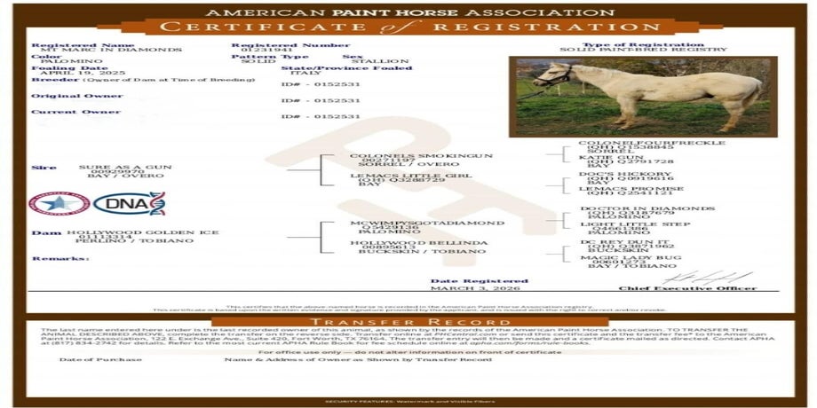 Se cerchi la combinazione perfetta tra bellezza mozzafiato e un carattere d’oro, questo giovane castrone è il soggetto ideale. A soli 3 anni, si distingue già per una morfologia impeccabile e un mantello di raro fascino che non lo fa passare inosservato. Si tratta di un esemplare di assoluto valore, accompagnato dai suoi documenti americani originali, che ne attestano la purezza della razza e la linea di sangue. Nonostante la giovane età, è già domato e sta dimostrando una maturità sorprendente: è un cavallo estremamente bravo, equilibrato e volenteroso nel lavoro. La sua indole serena lo rende un compagno affidabile e piacevole, ideale per chi cerca un soggetto di prospettiva, pronto per essere rifinito secondo le proprie esigenze o per diventare il partner perfetto per il tempo libero.